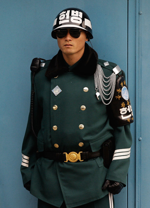 板门店非军事区特供大衣,穿上它意味着责任,以及随时吃枪子、被绑架的危险。设计上很有欧陆范,目标自然是帅瞎对面。对了,身高不足180cm,是不能去板门店执勤的,大衣考验身材啊。